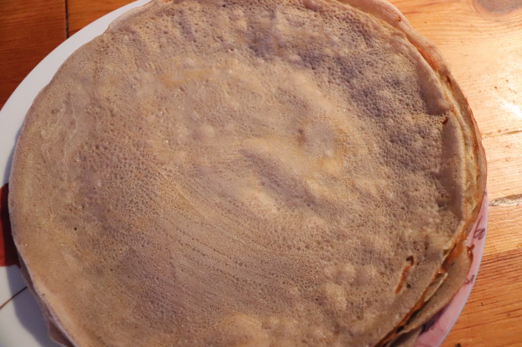 Au moment du repas remuer à nouveau la pâte, beurrer une poêle à crêpe et les faire cuire comme des crêpes classique