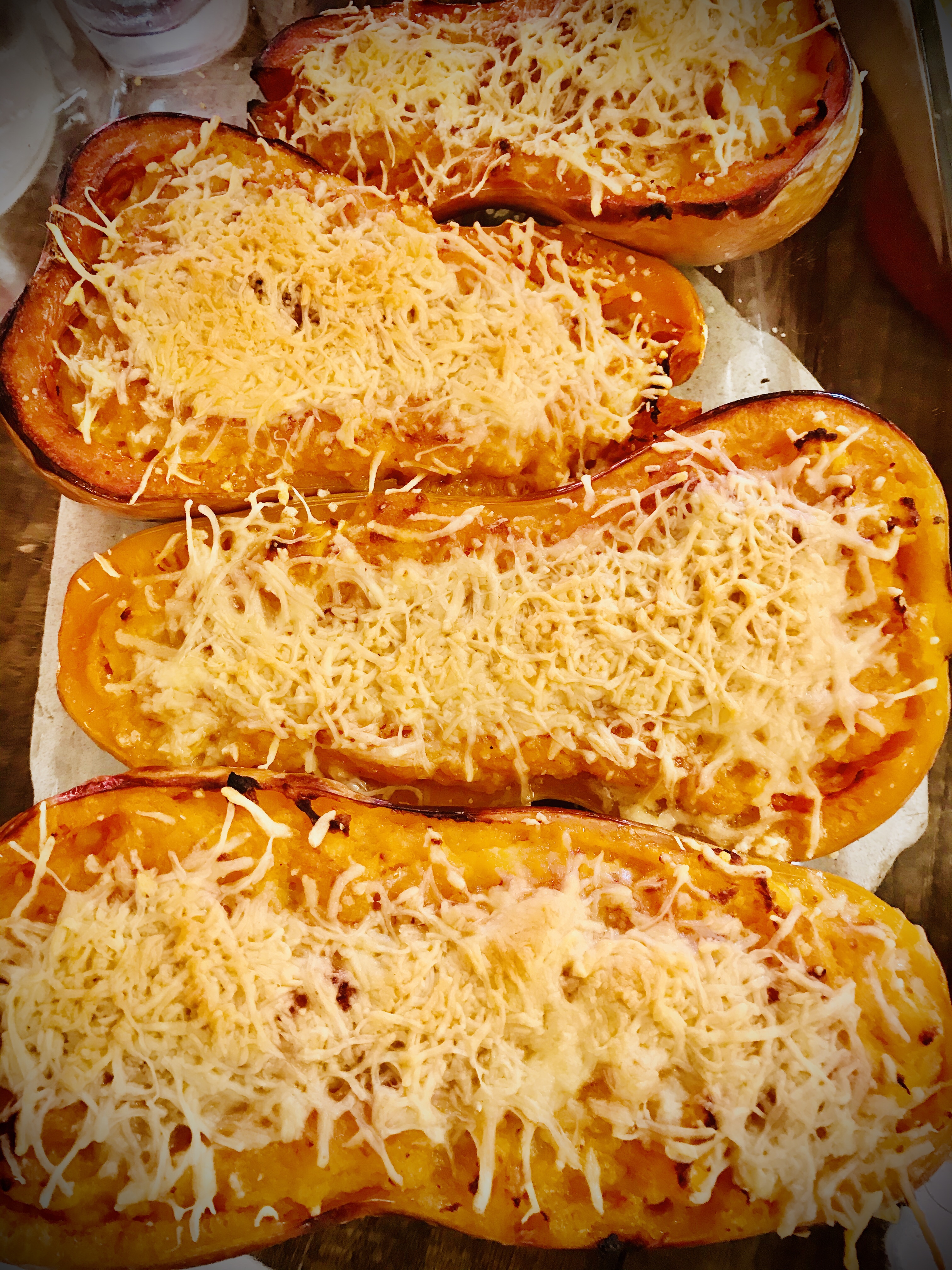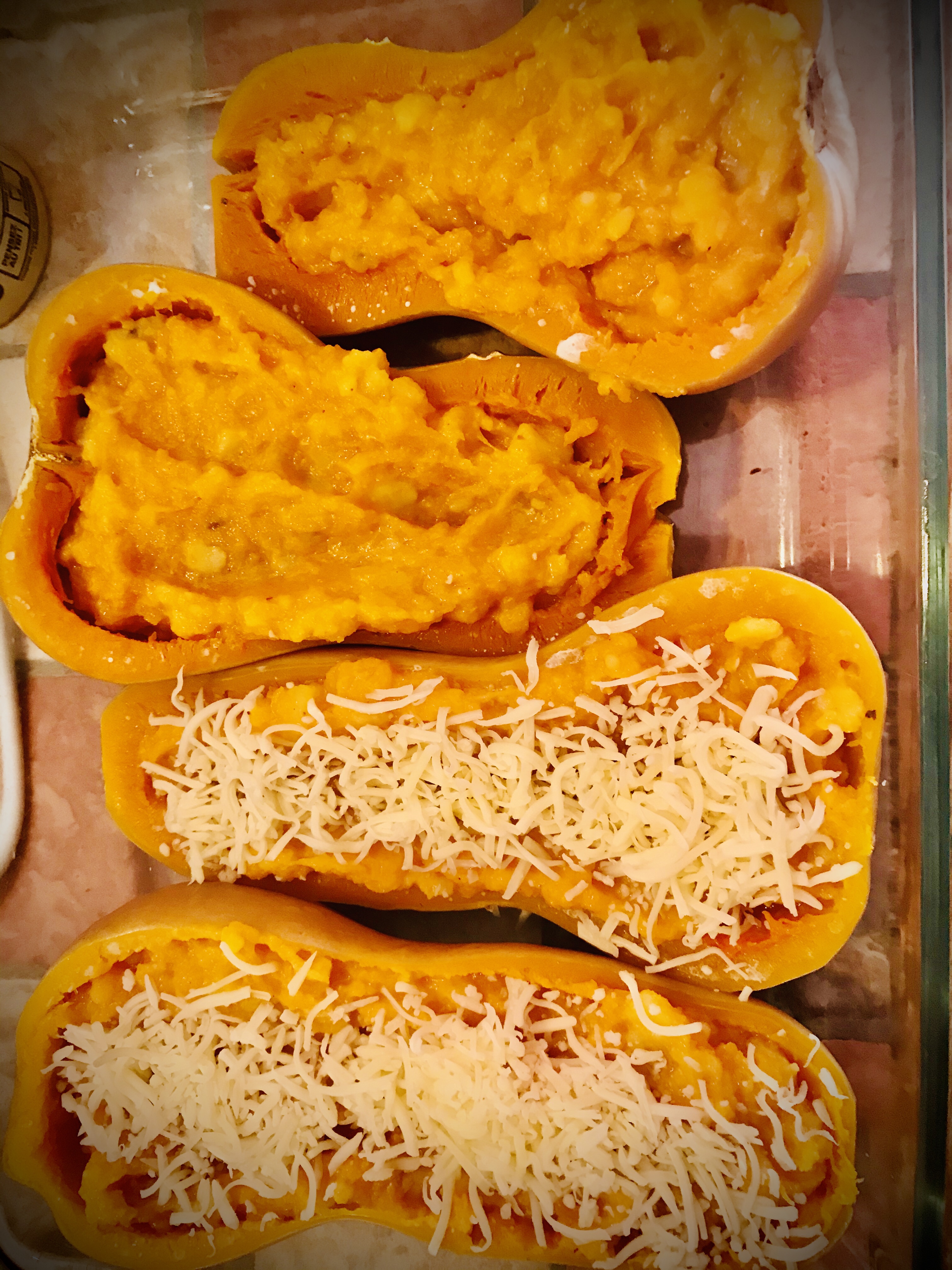 Transvaser dans les butternuts, parsemer de gruyère râpé.