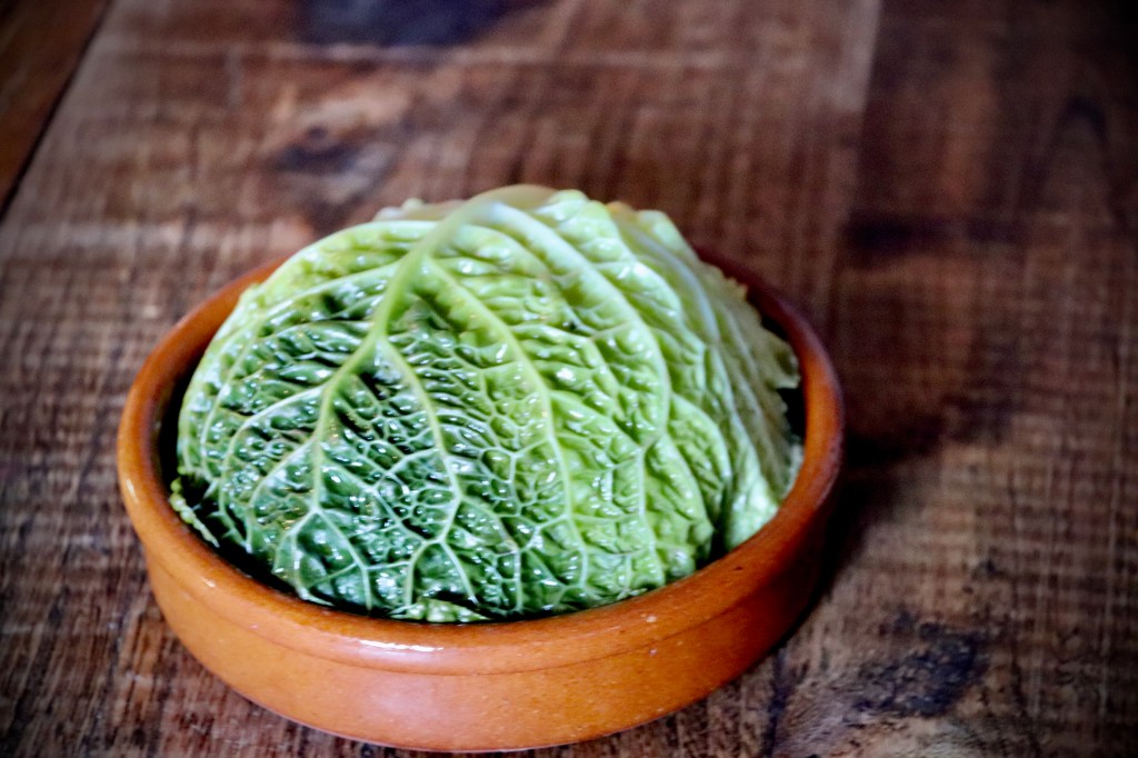 Avec la même idée de changement j’ai cherché une recette pour le chou vert que je venais d’acheter.