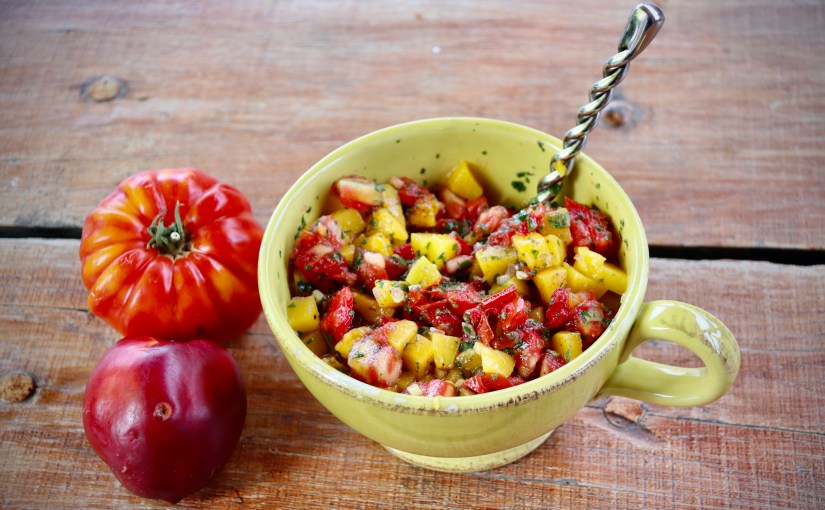 Servie avec un steak d’espadon grillé, ma maman qui découvrait la salsa a adoré et en a repris.