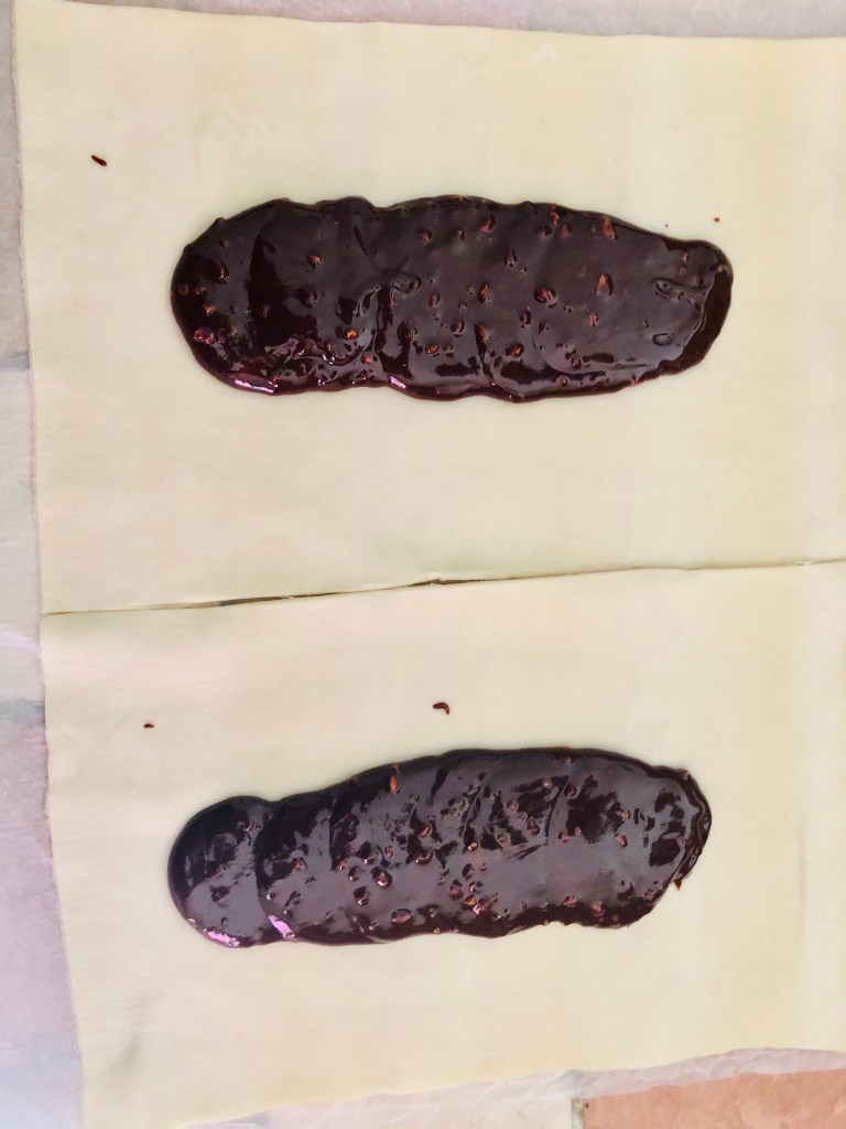 Une pâte feuilletée, de la pâte à tartiner et une banane.
