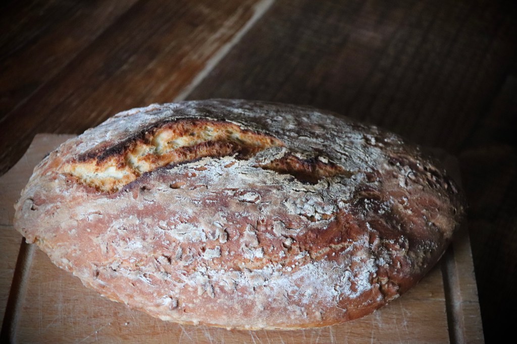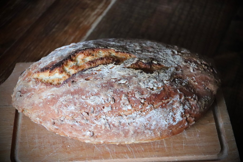 Les saveurs sont marquées, très agréables, une croûte croustillante, une mie aérée, j’aime changé : des noix, des graines de courges… ce que j’ai sous la main.