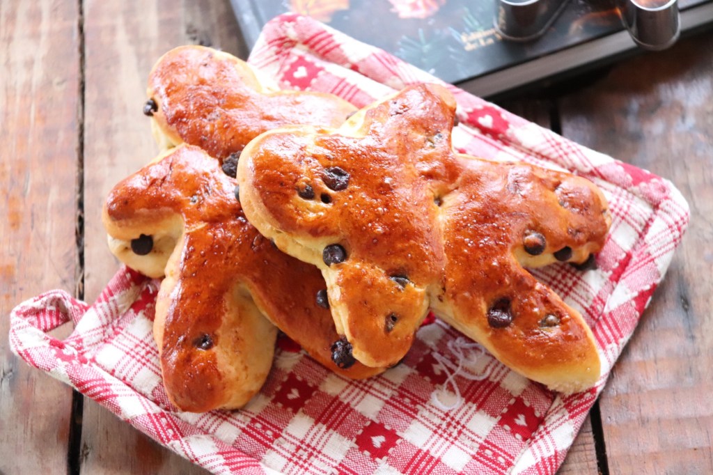 J’ai adoré l’idée et il y avait un emporte pièce bonhomme, j’avais déjà testé plusieurs recettes de mannele mais une fois la pousse réalisée, à la sortie du four mes bonhommes ressemblaient plus à de gros tas informes… toujours très bon mais pas publiables.