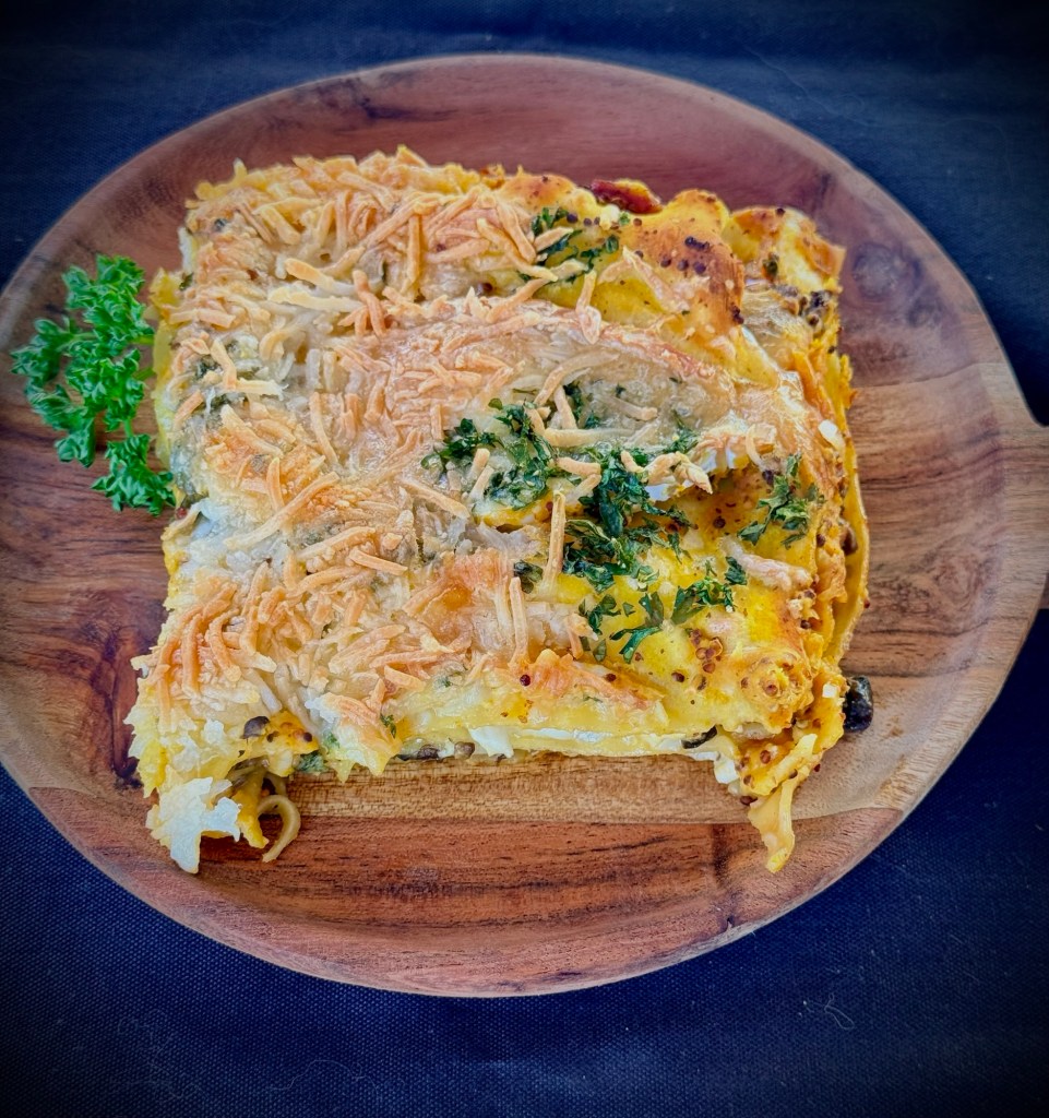 Je suis désormais sans lactose et l’idée m’était venue de me servir d’un fond de soupe de butternut en guise de béchamel, crème d’amande liquide, et j’y avais rajouté 1 cuillère de moutarde à l’ancienne.