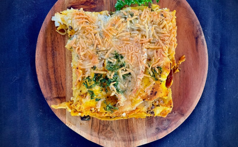 Je suis désormais sans lactose et l’idée m’était venue de me servir d’un fond de soupe de butternut en guise de béchamel, crème d’amande liquide, et j’y avais rajouté 1 cuillère de moutarde à l’ancienne.