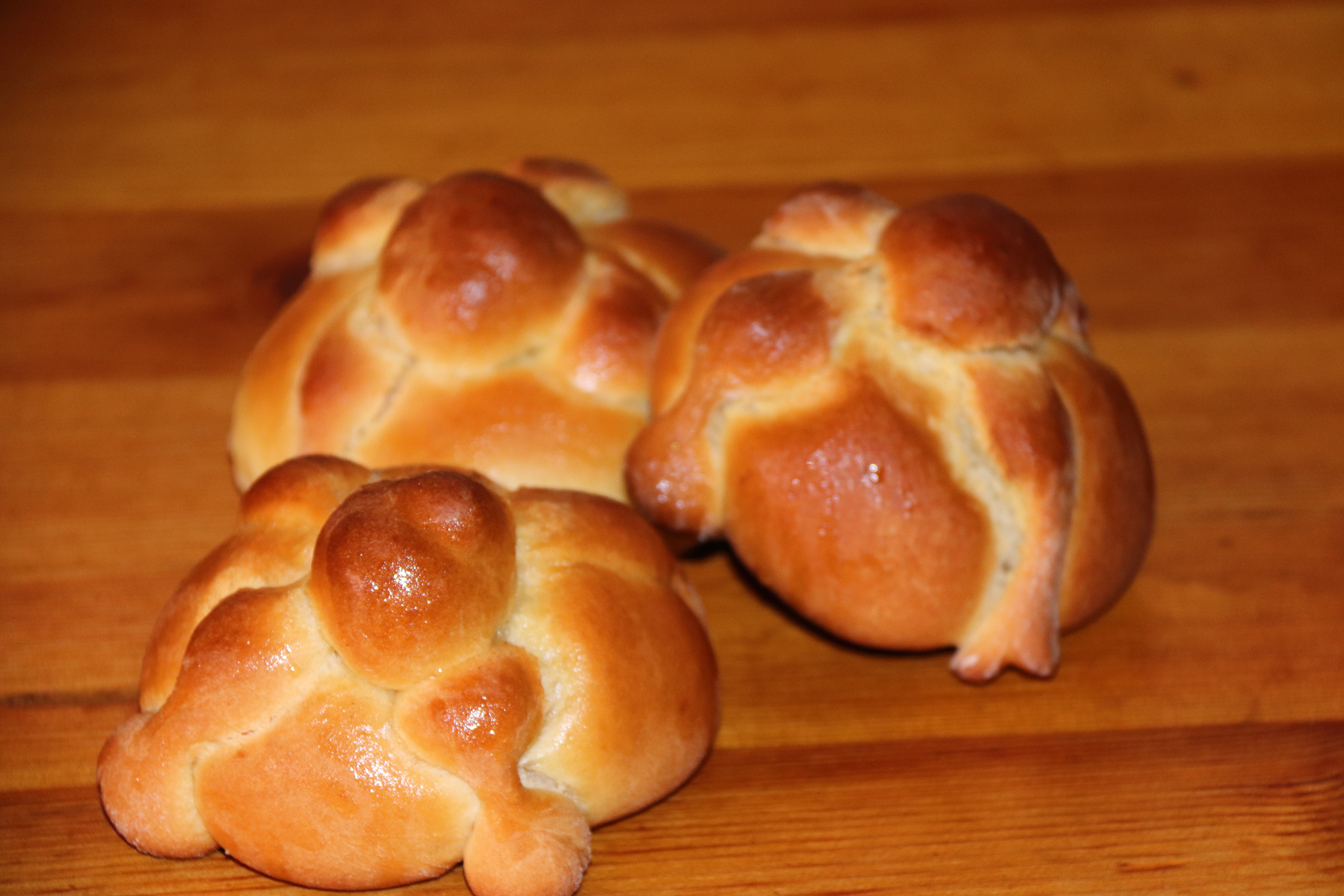 Vivant loin de chez elle j’ai voulu lui faire une petite surprise en préparant ces petites brioches traditionnelles de la fête des morts au Mexique.