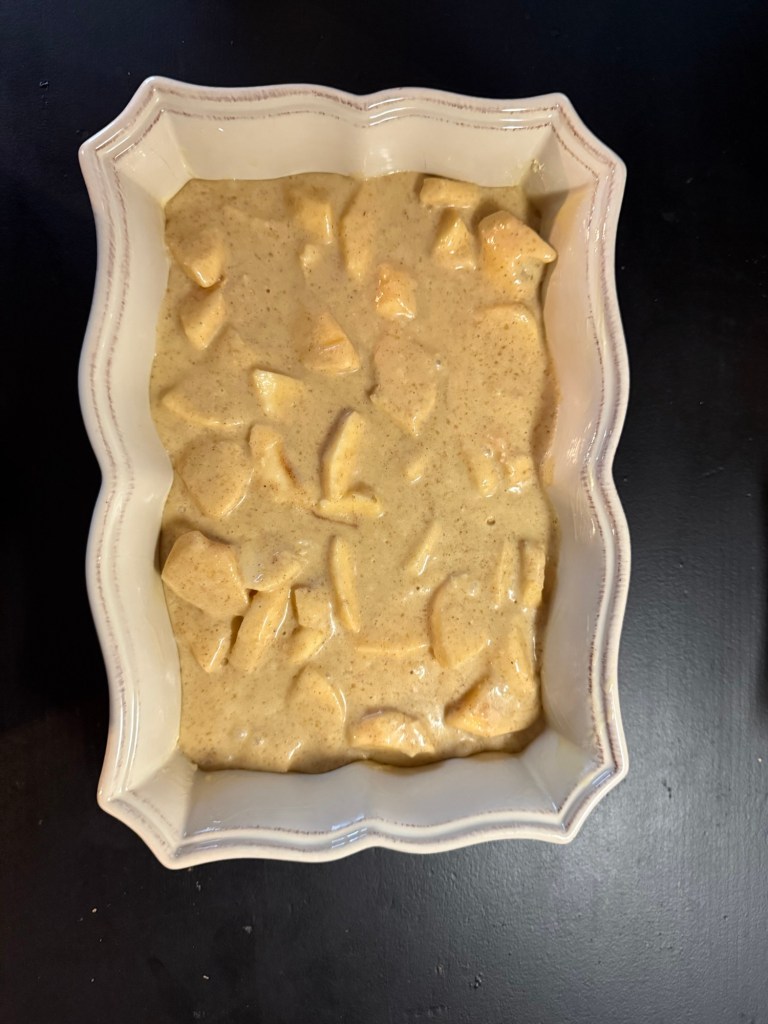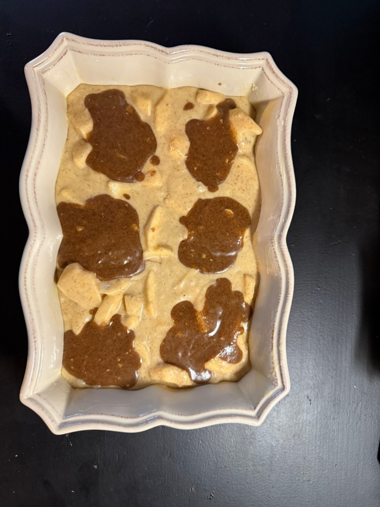 Beurrer un moule à gâteau ou à cake et y verser la préparation au pommes.