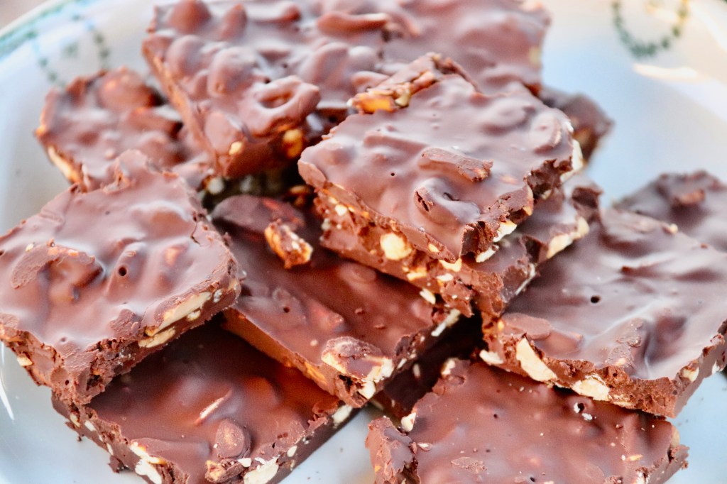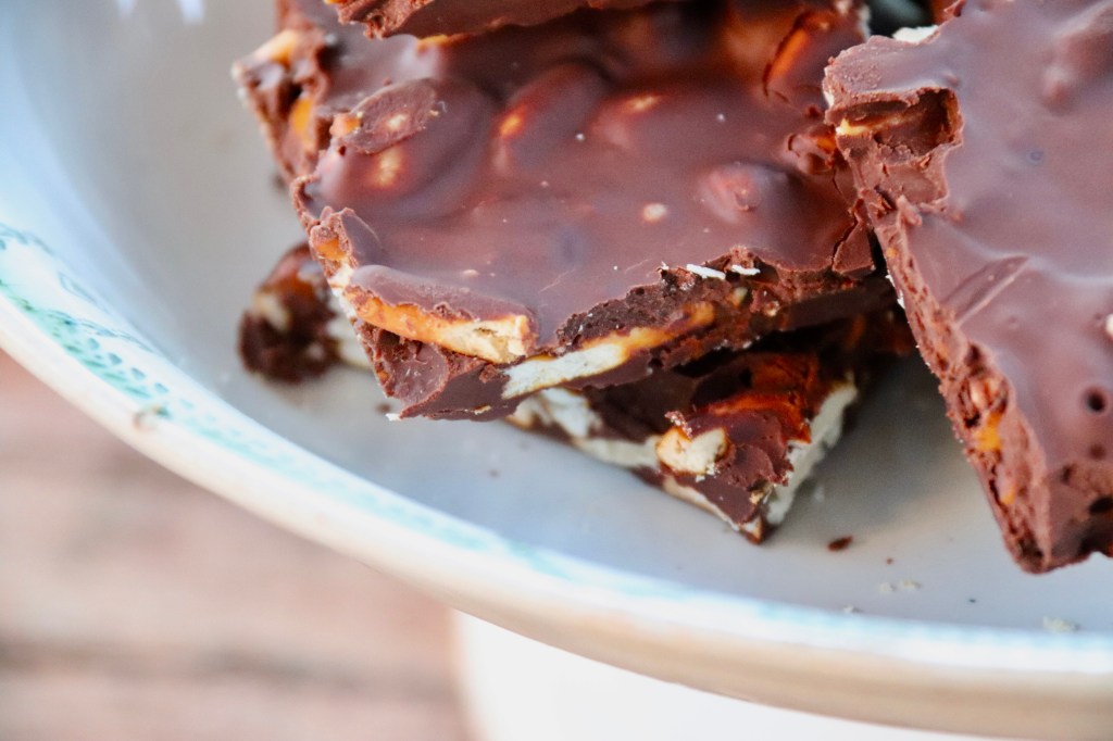 Après mon essai apprécié de Bouchées chocolat cacahuète j’ai voulu y ajouter des Bretzels pour y faire un petit clin d’œil.